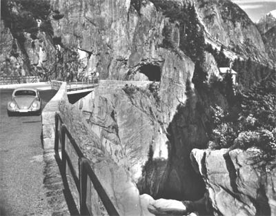 In der Schöllenenschlucht oberhalb von Göschenen wurde dann im Mittelalter, der Sage nach, mit Hilfe des Teufels eine haarsträubende Brücke, die an Ketten hing, über den Abgrund gebaut, bis heute hat sich der Name 'Teufelsbrücke' erhalten. Heute verläuft die alte Strasse vom Vierwaldstätter See gut asphaltiert das Reusstal herauf über Amsteg, Gurtnellen, Wassen und Göschenen, wo die Route auf den Pass die Tunnelvariante verlässt. Über den Gotthard sind seit den Römern Güter aus Italien nach Norden und vice versa geschafft worden und auch heute noch ist er eine der Hauptverbindungen im Transitwarenverkehr der EU. Neben der Landstrasse führt daher auch die Gotthardautobahn den Verkehr durch das enge Tal, sehr zum Verdruss der Anwohner. Um der Lkw-Flut Herr zu werden wurden nach der Tunnelbrandkatastrophe Auffangzonen für den Schwerverkehr eingerichtet, seither herrscht Dauerstau auf der Autobahn, die man tunlichst meiden sollte. Da sie in Tunnels und Galerien verläuft, versäumt man zudem die wilde Landschaft. In Göschenen, das neuerdings umfahren werden kann, sei dem Reisenden ein Abstecher auf die Göscheneralp zu Füssen der vergletscherten Flanken des Dammastockes empfohlen. Hinter dem Dorf steigt die Strasse in mehreren Galerien und serpentinenreich steil an. Vor Andermatt durchfährt man die Schöllenenschlucht, wo die Strasse in den Berg gehauen wurde, durch das sog. 'Urner Loch'. Hier kann man das Suworow-Denkmal besichtigen -übrigens russisches Hoheitsgebiet-, ein Andenken an den russisch-österreichischen Versuch, Napoleon zu stoppen, der Tausende das Leben kostete und am Ende misslang. In unmittelbarer Nachbarschaft zur Strasse verlaufen die Gleise der Furka-Oberalp-Bahn, die hier im Zahnradbetrieb den steilen Hang überwindet. Hinter Andermatt, wo sich der Weg mit dem Aufstieg zum Oberalppass ins Rheintal trifft, folgt man dem Urserental nach Westen und ab Hospental, von wo der Furkapass via Realp unsere Route kreuzt, steigt die Strasse dann in engen Kehren gut ausgebaut an und hat bis zur Passhöhe hin Autobahncharakter. Empfehlenswert ist hier die Route über die alte, z.T. mit Kopfsteinpflaster versehene Strasse. Auf der Passhöhe lohnt ein Besuch des Gotthardmuseums, in dem die lange Geschichte des Passes dargestellt ist, man sieht das Leben der Vorfahren und die unglaublichen Konstruktionen früherer Tage, als man mit Säumern und Maultieren den Pass bezwang. Die militärische Bedeutung des Passes und seine verkehrstechnische Entwicklung sind ebenfalls Ausstellungshighlights. Hinunter ins Tessin führen wiederum zwei Wege: Die erste Strecke verläuft wieder autobahnähnlich in weiten Kehren und unter Galerien nach Airolo. Die zweite und m.E. empfehlenwertere Strecke ist die alte Passstrasse, die Tremola, die wiederum mit Kopfsteinpflaster belegt in engen Kehren hinunter ins Tessin führt. Man hat während der Abfahrt einen unglaublichen Blick ins Bedrettotal und ins Val Tremola. Unten angekommen können wir in die lieblichen Gefilde des Südens weiterreisen, hier sind allerdings auf dem Weg nach Biasca und Bellinzona noch einige Serpentinen zu überwinden. Airolo selbst versank nach dem Bau des Gotthardtunnels in einen Dornröschenschlaf, den dieser südlich anmutende Ort nicht verdient hat. Ein nettes Städtchen, das als ehemaliger Säumerort zu Wohlstand gelangt war. Weiter südlich führt der Weg entweder an den Lago Maggiore, oder über Biasca und den Lukmanier zurück ins Rheintal, - oder man nimmt den Weg von Airolo durchs Bedretto über den Nufenen ins Wallis. Eine Alternative bietet bei geschlossenem Pass der Gotthardtunnel. Er ist ganzjährig offen, allerdings Teil der Autobahn, daher vignettenpflichtig. |