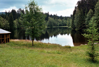 | Wir fahren auf der B27 aus Stuttgart heraus über Schorndorf, Aalen Richtung Nürnberg, an diesem vorbei über Bayreuth bis zum Aufstieg ins Fichtelgebirge. Die Strassenverhältnisse sind bekanntermassen gut, es gibt kaum Lkw-Verkehr, wir kommen zügig voran. Hinter Bad Berneck steigt die B 303 sanft an, es gibt einige Kehren und schon ist man auf 770m im Fichtelgebirge. Nadelwald, einige Seen und viel Ruhe findet man hier oben. In einem urigen Gasthaus in unmittelbarer Nähe der Quelle des Weissen Main kehren wir ein und genehmigen uns in der Vorausschau der auf uns zu kommenden böhmischen Küche ein deftiges Knödelessen. So gestärkt fahren wir auf einer langen Geraden, die steil den Berg wieder hinabführt ins Egerland nach Marktredwitz, dem letzten grösseren Ort vor der tschechischen Grenze. Die Eger, tschech. Ohre, ist linker Nebenfluss der Elbe in Bayern und der Tschechischen Republik, entspringt am Nordhang des Schneeberges im Fichtelgebirge und mündet bei Leitmeritz, tschechisch Litomerice, in die Elbe. Nach der Eger ist das historische Egerland in Nordwestböhmen benannt und die deutsch-böhmische Stadt Eger, tschechisch Cheb, die bereits 1061 Egire hiess. Der Flussname geht übrigens auf das 9. Jahrhundert zurück. | ![]() Stilles Naturidyll im Fichtelgebirge |
