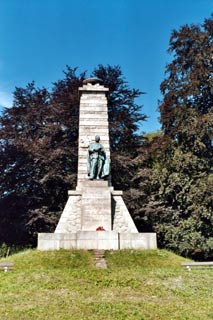 Hier steht ein Denkmal für die Opfer des letzten Krieges. Vor Waldmünchen